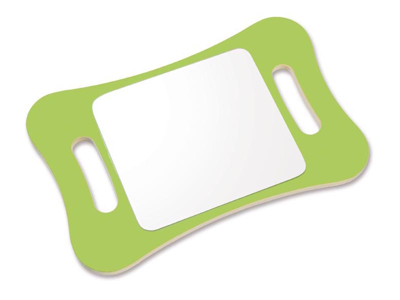 Saugus nedūžtantis veidrodis, pagamintas iš akrilo, spalvoto MDF rėmo su užapvalintais kraštais, su rankenėlėmis, kurias vaikui patogu laikyti. Teikia pagalbą logopediniuose užsiėmimuose (kalbos raidos sutrikimai), taip pat plėtojant intelektinę veiklą – pažįstant save ir aplinką (optiniai reiškiniai).