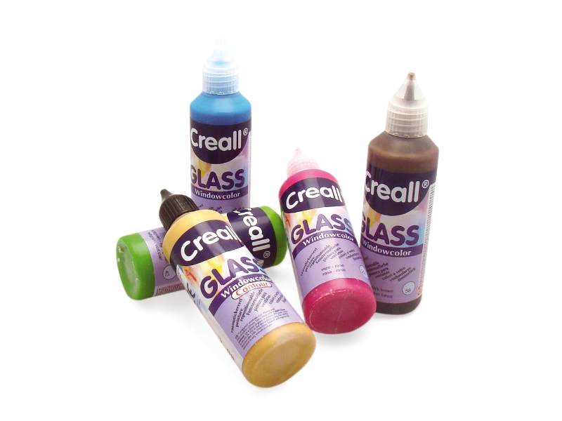 Skaidrių dažų rinkinys vitražams kurti. Turi kontūrinių dažų, skirtų kopijuoti raštus ant stiklo paviršių. Kitais 5 spalvų dažais užpildomas gautas laukas.