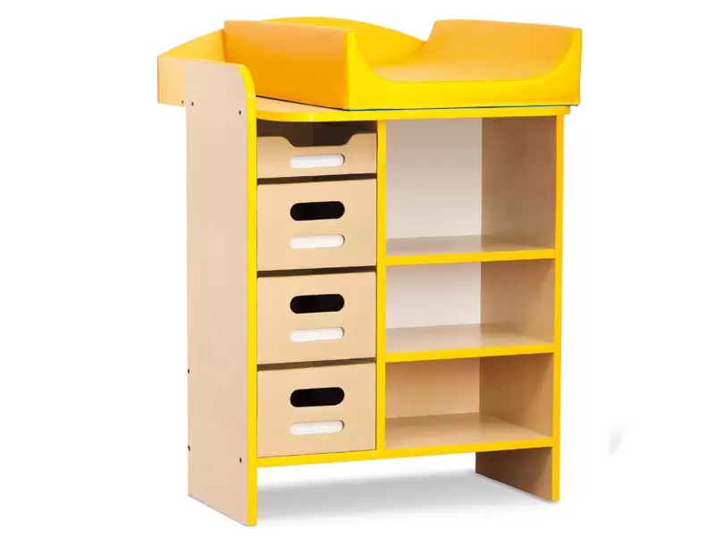 Persirengimo spintoje yra 2 lentynos, pagamintos iš 18 mm storio beržo spalvos drožlių plokštės ir 4 dėžės, pagamintos iš smėlio spalvos kartono, kurių matmenys 25 x 35 x 3 ir 17,5 ir 1 ir 8 cm. Stalas su čiužinuku, kuris pagamintas iš geltonos spalvos PVC putų, kurio dydis 50 x 70 x 15 cm Nugarėlė pagaminta iš 3 mm storio baltos spalvos HDF plokštės. Baldas tvirtinamas prie sienos.