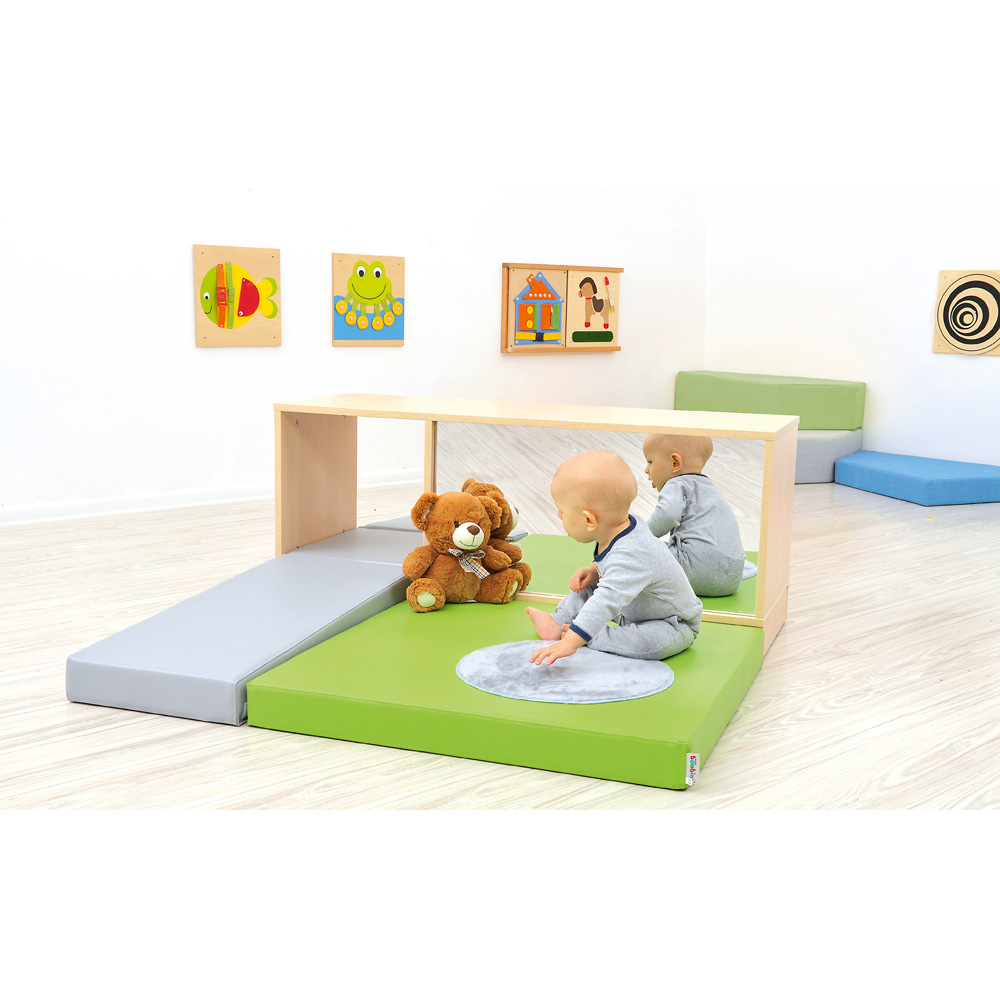 Žaidimų kampelis su veidrodžiu ypač skirtas vaikų darželiams. Jį sudaro žema spintelė su veidrodžiu, kuriame vaikas gali stebėti savo atspindį arba aplinką, ir minkšti čiužiniai, ant kurių jis gali žaisti.