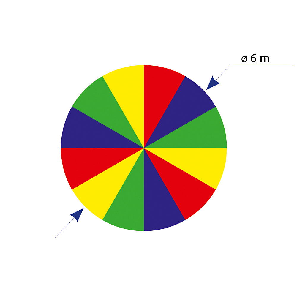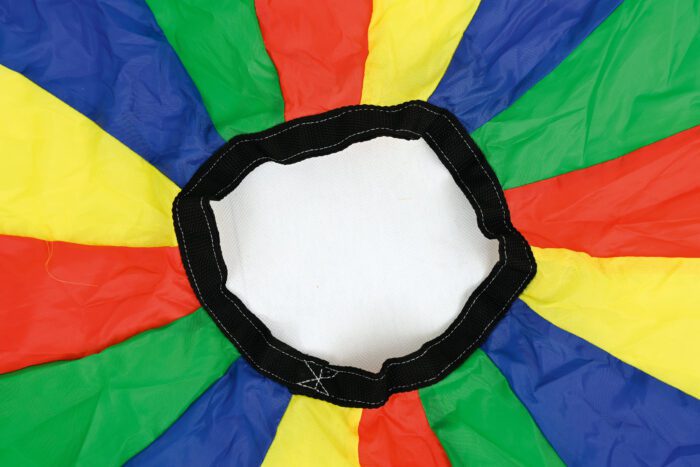 Spalvingas ir lengvas žaidimų parašiutas, tinka daugeliui žaidimų ir komandinių veiklų. Jis turi rankenas, leidžiančias keliems žmonėms dalyvauti žaidimuose.