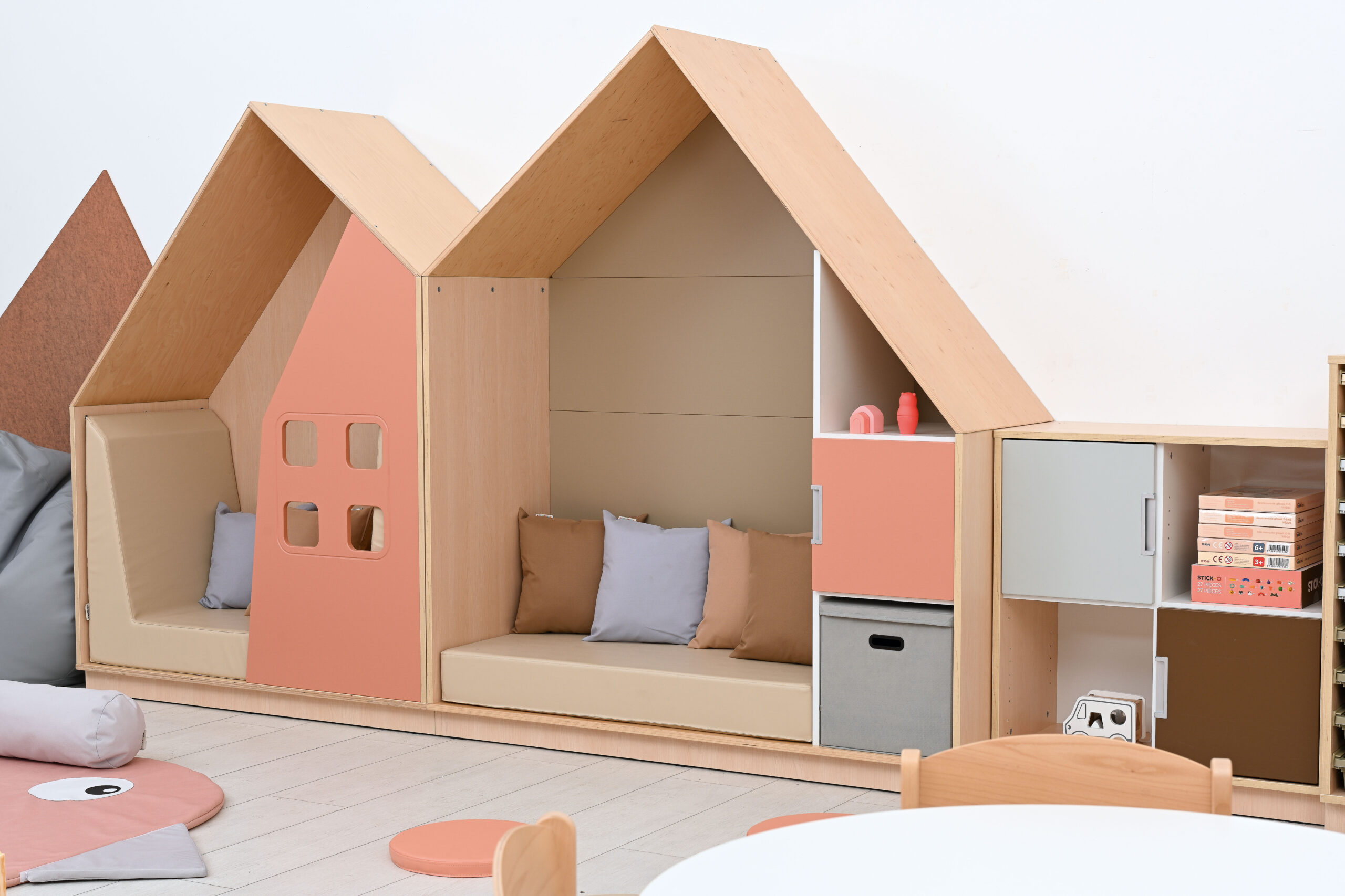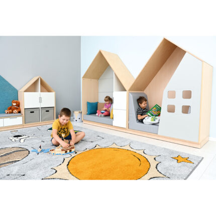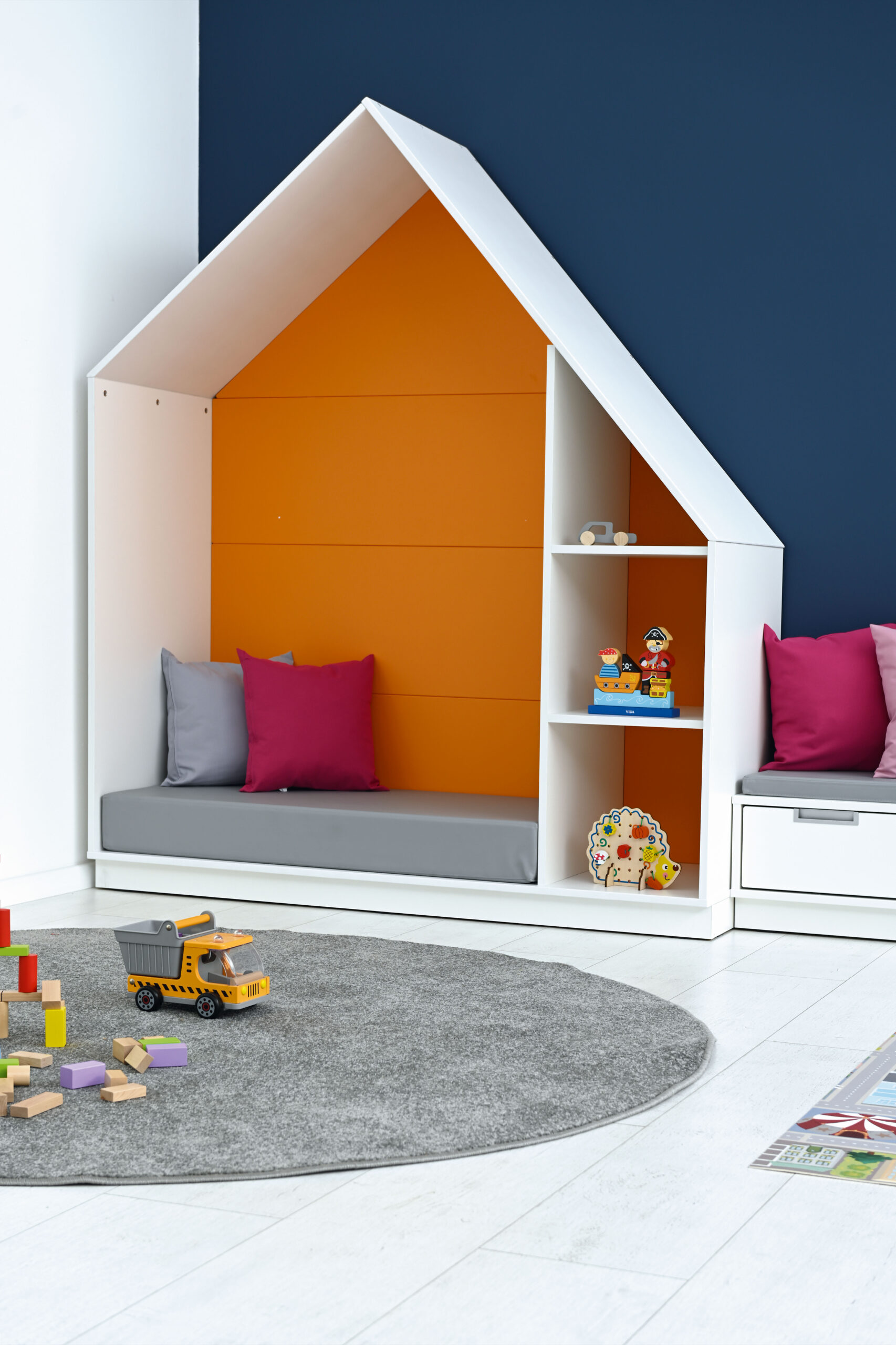 Žaidimų, skaitymo kampelis su atvirtomis lentynomis Quadro