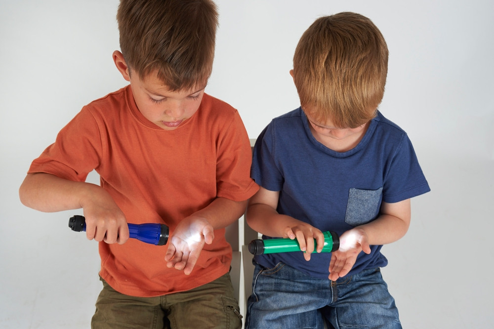 Rinkinyje yra 12 žibintuvėlių: 3 raudoni, 3 mėlyni, 3 žali, 3 geltoni.
